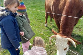 Auf dem Weidehof Appold in Lichtenau können Kinder im Rahmen des Programms Erlebnis Bauernhof Weidekühe auch streicheln und füttern.