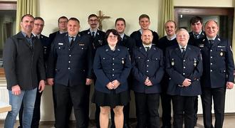 Auf dem Bild die geehrten, verabschiedeten und ernannten Kameraden, inkl. Kommandanten der Freiwilligen Feuerwehr Waigolshausen und die Vorsitzenden des dazugehörigen Feuerwehrvereins. (v.l.n.r.: Bürgermeister Christian Zeißner, Vorstand Wolfgang Strobel, Vorstand Matthias Köhler, KBM Daniel Krückel, stv. Kommandant Thomas Staab, Digital- und Medienbeauftragte Lisa Hofmann, Jugendwart Timo Budnik, Gerätewart Philipp Schraut, Kassier Korbinian Wohlfahrt, Schriftführer Manuel Ehni, Hauptfeuerwehrmann Georg Lauter, Jugendwart Niklas Staab und Kommandant Thomas Strobel.