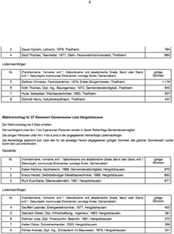 (*) Da der Erste Bürgermeister kraft Gesetzes nicht gleichzeitig Gemeinderatsmitglied sein kann, besteht für Christian Zeißner ein Amtshindernis für das Gemeinderatsmandat. Nach der formellen Feststellung durch den Wahlausschuss rückt entsprechend der Reihenfolge des Wahlergebnisses der Listennachfolger der Dorfgemeinschaft Theilheim in den Gemeinderat nach.