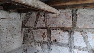 Freilegung des Wandaufbaus im Zuge der Sanierungsarbeiten.