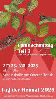 Inzwischen ist es schon fast eine Tradition geworden, dass wir uns im Mai zu einem Heimattag treffen. Auch in diesem Jahr zeigen die Eigenheimer am 25.05.2025 um 14 Uhr in unserer Vereinshalle Am Oberen Tor 2b wieder einen Film. Diesmal Teil 3 unserer Sammlung aus den 70er Jahren.