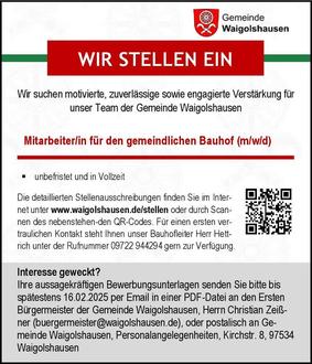 Viele Besprechungen laufen - oft auch nach außen nicht immer ersichtlich -, um weitere Projekte für die Gemeinde voranzutreiben. Diese zähen Prozesse erfordern einen langen Atem. Gemeinsam und in guter Zusammenarbeit mit dem Gemeinderat kommen wir aber trotzdem sehr gut voran. Die wichtigste Entscheidung dafür war die Verabschiedung des kommunalen Haushaltes. Dort werden die finanziellen Grundlagen festgelegt, indem die Mittel für das Jahr 2025 planerisch fixiert werden.