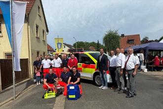Im Bild: Helfer vor Ort, OG Schwanfeld, BGMin Krein Lisa, BGM Blesch Tobias, BGM Christian Zeißner, Vertreter des RK Schweinfurt Von Christina Wunderling, Schwanfeld