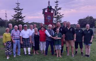 Beim anschließenden Irisch-Schottischem Sommerabend, konnte nach einer Versteigerung von Gemälden und Karikaturen des Künstlerehepaares Gabriele und Norbert Denno die finale Spendensumme von 1.200 Euro bekannt gegeben werden.