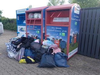 Es kommt derzeit leider immer wieder vor, dass die Altkleidercontainer aufgrund von Abholengpässen überfüllt sind und Kleidersäcke entweder in die Öffnung gestopft oder vor den Altkleidercontainer gestellt werden.