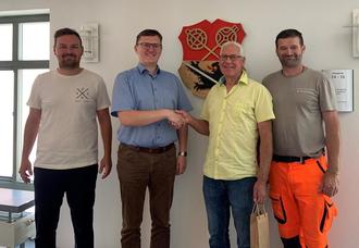 v. l. n. r. Personalrat Dominik Stöhr, Erster Bürgermeister Michael Senger, Roland Pfister, Bauhofleiter Markus Kohlmann