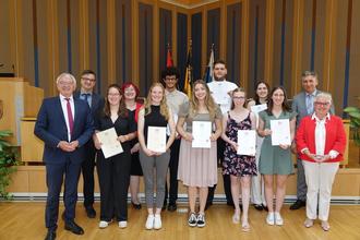 Rund 1100 junge Erwachsene haben 2024 ihre Abschlussprüfung an den drei Staatlichen Berufsschulen Bamberg abgelegt – zehn davon wurden für ihre herausragenden Leistungen beim Abschluss ihrer Ausbildung mit einem Staatspreis geehrt. Acht davon nahmen am 9. Juli an der Preisverleihung im Landratsamt teil.