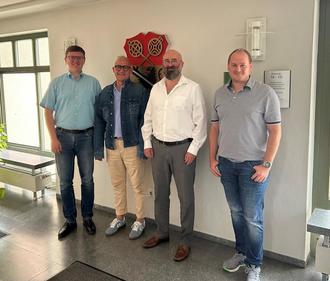 v. l. n. r.: Erster Bürgermeister Michael Senger, Ralph Gmach, Markus Burkard, Geschäftsleiter Bernd Eichhorn.