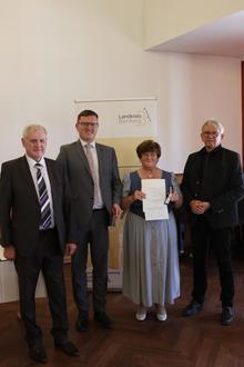 v.l.n.r.: stellv. Landrat Bruno Kellner, Erster Bürgermeister Michael Senger, Frau Annemarie Weinkamm, Landrat Johann Kalb.