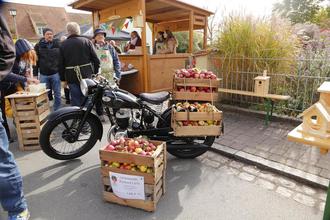 Apfel-Motorrad mit Ratespiel des OGV Steppach
