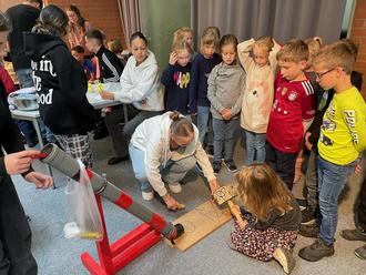 Am Tag selbst war die Klasse 9a in der Küche beschäftigt und die 7a servierten die Getränke und Menüs. Ein Teil kümmerte sich um die Spiele: Enten angeln und Schlag die Maus. Groß war das Getümmel und den Kindern bereitete der Tag viel Freude. Auch die Mittelschülerinnen und -schüler konnten am Ende des Tages sagen: „Das haben wir richtig toll gemacht!“. Danke an Frau Fricke und Frau Jäger für die Organisation und Durchführung! Es war ein tolles Fest für alle!
