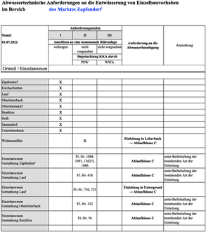 Die Gemeinden sind gemäß Art. 34 Abs. 2 Satz 2 BayWG (Bayerisches Wassergesetz) verpflichtet, Abwasserentsorgungskonzepte aufzustellen und fortzuschreiben für alle Anwesen, die nicht an die gemeindliche Abwasserbeseitigungsanlage angeschlossen werden. Das Abwasserbeseitigungskonzept (Stand: Juli 2022) wird nachfolgend veröffentlicht. Im Abwasserbeseitigungskonzept wird auch festgelegt, ob ein PSW (Privater Sachverständiger in der Wasserwirtschaft) zur Begutachtung einer Kleinkläranlage herangezogen werden darf und welche Anforderungen an die Kleinkläranlagen gestellt werden.