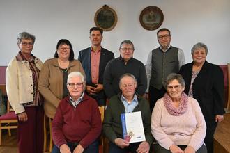 Werner Sailer (vorne Bildmitte) wurde für 30-jährige Mitgliedschaft geehrt. Es gratulierten die Ortsvorstandschaft sowie Kreisgeschäftsführer Frederic Fuchs und Bürgermeister Friedrich Bobinger.