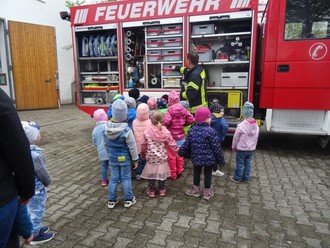 Zum Schluss durften alle Kinder zwei verschiedene Feuerwehrfahrzeuge genauer anschauen. Die Feuerwehr zeigte uns ihr gesamtes Equipment und erklärte uns dessen Funktionen. Als großes Highlight durften alle Kinder auch mal Feuerwehrmann oder Feuerwehrfrau spielen und hinten, sowie vorne ins Feuerwehrauto einsteigen und alles genau in Augenschein nehmen.