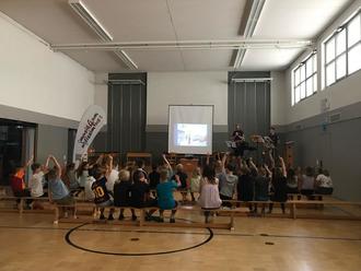 Zum Abschluss des Schuljahres besuchte ein Trio des Musikforums Notissimus die beiden Grundschulen in der Verwaltungsgemeinschaft für ein Gruselkino. Hier gab es zu einer Hexengeschichte passende Bilder und musikalische Darbietungen auf verschiedenen Musikinstrumenten. Bodypercussion, bei der die Kinder selber mit ihrem Körper Musik machen konnten, durfte bei so einer Aktion natürlich nicht fehlen!