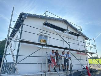 Nun erstrahlt die westliche Fassadenseite des Sportheim Mönstetten wieder in neuem Glanz. Die Sanierungsarbeiten am gemeindlichen Gebäude waren dringend erforderlich, da der Putz stellenweise bereits abgefallen war.