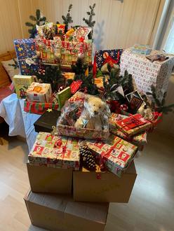 Liebevoll Verpacktes, angefangen von Kleidung über Selbstgestricktes und Gekauftes bis hin zu Gutscheinen und Lebensmitteln war alles dabei. Ein PKW-Kombi war vollgepackt zum Ausfahren. Wir haben 11 Kinder und ihre Alleinerziehenden glücklich gemacht und auch andere. Außerdem haben wir die uns bekannten einsamen Nachbar/innen beschenkt. Wir hoffen, dass wir ihnen so die Einsamkeit an Weihnachten ein wenig versüßen und das Gefühl vermitteln konnten, dass jemand an sie denkt.