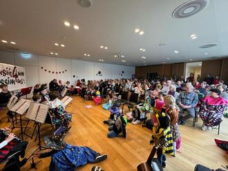 Am Sonntag, den 04.02.2024, wurde es bunt und musikalisch im Bürgerhaus in Mönstetten. Zum zweiten Mal veranstaltete das Musikforum Notissimus im Rahmen eines Faschingskonzertes einen Vorspielnachmittag für die jungen Nachwuchsmusikerinnen und -musiker. Auf der Bühne standen 40 maskierte Musikerinnen und Musiker, die vor ihren Familien ihr musikalisches Können zeigten. So kunterbunt die Kostüme waren, so vielfältig waren auch die Instrumente auf der Bühne. Egal, ob Melodica, Blockflöte, Klarinette, Schlagzeug, Akkordeon, Trompete oder Klavier, beim Musikforum Notissimus ist das Angebot groß. Neben Solostücken waren auch Gruppenbeiträge des Vororchesters des Musikforums Notissimus, der musikalischen Früherziehung, der Melodica-Gruppe sowie des Klarinettenensembles im kurzweiligen Programm mit dabei. Abschließend durften Süßigkeiten als Belohnung an diesem Nachmittag nicht fehlen. Bei Kaffee und Krapfen ließen die Anwesenden den Tag ausklingen.