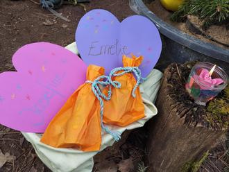 Wir freuen uns sehr, dass unsere Waldmäuse diese Woche wieder Zuwachs bekamen. Am Grundstück begrüßten wir im Morgenkreis Emelie und Josephine. Traditionell bekamen sie zur Begrüßung einen kleinen, personalisierten Mäuseanhänger aus Holz für ihren Rucksack, ein gebasteltes Herz mit ihren Namen darauf und eine kleine Überraschung. Wir freuen uns sehr, Emelie und Josephine sowie ihre Familien bei uns im Kreis der Waldmäuse zu begrüßen und wünschen allen eine gute Zeit, viele schöne Momente und Abenteuer im Brensbacher Waldkindergarten.