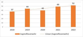 Auch in den Jugendfeuerwehren gab es eine leichte positive Entwicklung, welche durch eine sehr gute Qualität der Ausbildungsveranstaltungen, Ausflüge und Wettbewerbe erreicht werden konnte. Auch hier konnte die Coronapandemie mit vielen neuen Ideen und verantwortungsbewussten Betreuerinnen und Betreuern ohne große Verluste mit bereits steigenden Zahlen im Jahr 2022 abgeschlossen werden.