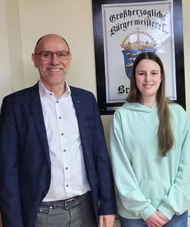 Begrüßung durch Bürgermeister Rainer Müller: Johanna Adam interessiert sich im Praktikum für die Arbeit in der Gemeindeverwaltung Brensbach