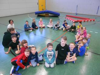 Am Montag, den 02.03.2026 war es wieder soweit… die 1. Klasse der Grundschule besuchte mit ihrer Lehrerin die Schulanfänger in der Turnhalle zum gemeinsamen Turnen.