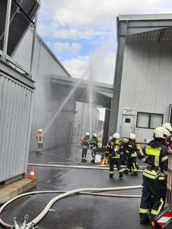 Besonders aber auch dafür, dass sich Mitarbeiter ab 08:00-13:30 Uhr Zeit genommen haben, um die Übung mit vorzubereiten, eine kleine Werksführung anboten und dann im Nachgang beim Aufräumen und wieder füllen der Zisterne geholfen haben.