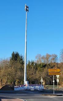 seit Dienstag (18.03.) steht ein Sirenenmast am Brensbacher Kreisel. Mit einer Höhe von 16 Metern und einer Tiefe des Fundaments von 2,50 Metern ist das neue Bauwerk unübersehbar. Die Sirene dient unserer aller Sicherheit, denn sie warnt uns vor vielerlei möglichen Gefahrenlagen und unterstützt die Alarmierung der Feuerwehr. Mit einer 360 Grad Beschallung kann ein großer Teil von Brensbach mit den Warntönen und künftig auch mit Sprachdurchsagen abgedeckt werden. Um dies sicherzustellen, braucht es diese enorme Höhe. Ursprünglich war es vorgesehen, die Sirene im Bereich des Oberwaldes am Hochbehälter aufzustellen. Allerdings musste der Standort an den Kreisel verlegt werden, da am Oberwald eine weiträumige Beschallung für Brensbach nicht gegeben war. Das haben umfangreiche Messungen ergeben. Durch die Umstellung auf digitale Steuerungssysteme entspricht die Sirene den aktuellen Anforderungen zur Warnung der Bevölkerung. Zudem sind alle anderen Ortsteile ebenfalls mit Sirenen ausgestattet. Die Kosten für den neuen Sirenenmast belaufen sich auf rund 20.000,- Euro. Die Gemeinde Brensbach wurde jedoch mit einer Förderung des Bundes in Höhe von 15.000,- Euro finanziell unterstützt. Der letzte Warntag am 13. März 2025 hat gezeigt, dass die Gemeinde Brensbach, ergänzend zu den Alarmsignalen über die Mobiltelefone, mit den technisch umgerüsteten Warnanlagen für die Sicherheit der Bevölkerung gut gerüstet ist. Mein Dank geht an die Freiwillige Feuerwehr Brensbach und an die Bauverwaltung für deren Unterstützung zur Realisierung dieser wichtigen Warnanlage.