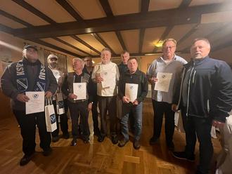 Ehrungen für langjährige Vereinsmitgliedschaft erhielten u.a. (v.l.n.r.) Dieter Fornof, Heinz-Jürgen Fornof, Reinhold Bingel, Armin Eisenhauer, Adam Hessdörfer, Georg Eidenmüller, Harald Guth und Wolfgang Spettel.