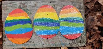 Und tatsächlich bis Ostern fehlt dem Mond nur noch ein kleines Stück um rund am Himmel zu leuchten. Diese Tage nutzen wir im Waldkindergarten um Eier zu bemalen, Nester zu formen, Lieder, Fingerspiele und Geschichten vom kleinen Häschen zu hören. Jeden Morgen fällt das kleine Häschen wieder in den Bach und seine Mutter klopft im das Fellchen aus, bis das es trocken ist…