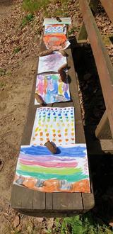 Bei milden Frühlingstemperaturen malten die Waldfüchse im Frühlingsatelier „Hinterwald“ mit Wasserfarben bunte Bilder.