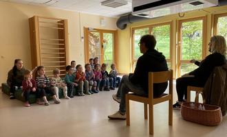 Am Mittwoch, den 10.04.2024 hat uns unser Patenschaftszahnarzt Dr. Schweitzer aus Fränkisch-Crumbach besucht. In seinem Handgepäck hatte er die Handpuppe „Hexe Irma“. Diese war allen Kindern aus dem Bilderbuch „Irma hat so große Füße“ bekannt. Nach einer kurzen Gesprächsrunde haben dann die Kinder die Aufgabe bekommen, die mitgebrachten Nahrungsmittel in Obst und Gemüse zu unterteilen, dies hat super geklappt. Außerdem hat uns Dr. Schweitzer dieses Mal auch diverse Obst-und Gemüsesorten zum Probieren mitgebracht, sehr lecker.