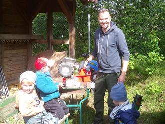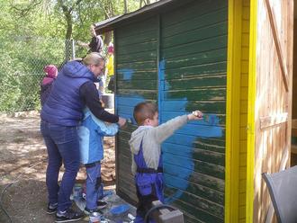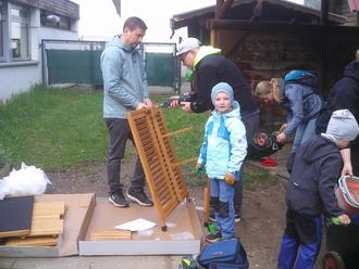 Neben Unkrautbeseitigung standen auch streichen, Fahrzeuge reparieren, Sichtschutz erneuern und der Aufbau der neuen Aufbewahungshäuschen für das Sandspielzeug auf dem Plan.