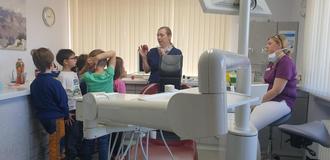 Am vergangenen Dienstag folgten wir der Einladung von Frau Dr. Hasieber. Um 9.00 Uhr hatten wir einen Termin in der zahnärztlichen Gemeinschaftspraxis Brensbach. Wir durften direkt durch gehen in Zimmer vier. Frau Hasieber und ihre Helferin Tamara empfingen uns sehr freundlich. Heute durfte jedes Kind alles sein - Patient - Helfer oder Helferin - Zahnarzt oder Zahnärztin. Handschuhe, Mundschutz durften nicht fehlen. Abwechselnd schlüpften die Waldfüchse in die verschiedenen Rollen, dazu erklärte Frau Dr. Hasieber was die Aufgaben des zahnärztlichen Teams während der Behandlung eines Patienten sind. Auf dem Zahnarztstuhl entdeckten die Kinder den ein oder anderen Wackelzahn im Mund der Freundin oder des Freundes. Die Waldfüchse sind nun „echte“ Schulkinder. Auch erklärte Frau Dr. Hasieber, anhand eines Backenzahnes aus Gips, wann es sinnvoll ist, diese zu versiegeln, damit sie besser vor Karies geschützt sind. Jeder Waldfuchs durfte sich einen Backenzahn, der zuvor eigenhändig versiegelt wurde, mit nach Hause nehmen.