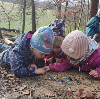 Wir möchten uns bei den Eltern der Waldmäuse ganz herzlich für unser Weihnachtsgeschenk bedanken. Heute Morgen haben wir ganz aufgeregt die beiden mit Sand gefüllten Eimer mit auf unseren Spaziergang genommen, um gemeinsam herauszufinden, was sich in den Eimern versteckt. Bei Sonnenschein verbachten wir unseren Vormittag am Kartoffelplatz. Nachdem wir nun gemeinsam frühstückten, konnten wir uns auf Entdeckungsreise mit den Eimern begeben. Mit unseren Händen fühlten wir den Sand in den Eimern. Er war kalt und feucht und immer wieder haben wir darin kleine, bunte Steine gefunden. Anschließend haben wir mit den bunten Steinen eine Schlange und auch eine Schnecke gelegt, dabei gesungen und uns sehr über das schöne Geschenk gefreut. Vielen Dank!