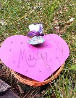 Wir freuen uns sehr, dass unsere Waldmäuse vergangene Woche wieder Zuwachs bekamen. Im Morgenkreis begrüßten wir Mailin und ihre Mama. Gemeinsam sangen wir unser „Guten Morgen Lied“ und frühstückten anschließend. Mailin bekam traditionell zur Begrüßung einen kleinen, personalisierten Mäuseanhänger für ihren Rucksack, ein gebasteltes Herz mit ihrem Namen darauf und Seifenblasen. Wir freuten uns sehr, Mailin und ihre Mama bei uns im Kreis der Waldmäuse zu begrüßen und wünschen Mailin und ihrer Familie eine gute Zeit, viele schöne Momente und Abenteuer im Brensbacher Waldkindergarten.