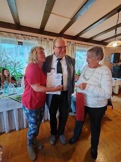 Weitere Ehrungen waren 25 Jahre Werner Spalt, 20 Jahre Otto Klinger und Armin Wendt, Helmut Ackermann, 15 Jahre Severini Charlotte, Karin Dörr, Roland Buxmann. Unterstützung bei der Ehrung erhielt er von den neu gewählten Vertreterinnen der Frauen.