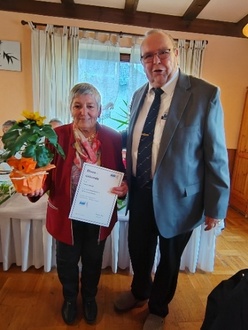 Als weiteren Punkt der Tagesordnung war die Ehrung verdienter Mitglieder. Zur Freude des Vorsitzenden bekam der OV Besuch von einer Rechtsanwältin aus der Bezirksgeschäftsstelle in Darmstadt, mir der unser Vorsitzender im Rahmen seiner Beratung zusammenarbeitet. Frau Helen Ördög bedankte sich für die spontane Einladung der sie gerne privat gefolgt sei.