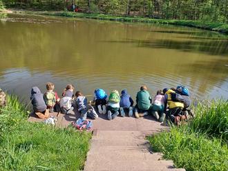 Am Teich beobachten die Kinder die Kaulquappen, die schon bald als Kröten im Wald zu entdecken sind.