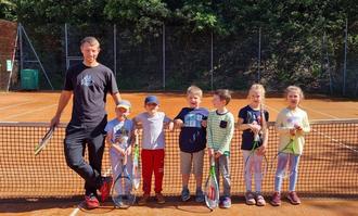Die Schulanfänger und zwei Erzieherinnen sind mit dem Bus nach Brensbach gefahren, dort angekommen, liefen wir zur Tennisanlage. Christoph, der Tennisprofi zeigte uns mit viel Spaß und unterschiedlichen Spielen, wie man einen Ball auf dem Schläger transportiert und ihn über das Netz bringt. Das Beste waren die „Schlägerklappen“, denn mit denen mussten wir ganz schnell einen Ball aufheben und über das Netz werfen. Wir waren zwei Mannschaften und wer die wenigsten Bälle auf seiner Seite hatte, gewann das Spiel. Es gab auch zwei „Ballmädchen“, die die Bälle wieder einsammelten.