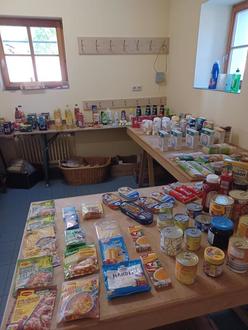 Zum anderen erkennen wir, dass es sinnvoll ist, die Gaben mittels eines Systems der Selbstauskunft über die vorhandenen privaten, monatlich zur Verfügung stehenden Mittel zu verteilen. Einzelheiten dazu werden nach den Sommerferien öffentlich mitgeteilt. Bis dahin nehmen wir gerne Ihre Einkäufe entgegen. Dabei bitten wir Sie, sich auf die Grundnahrungsmittel zu verständigen, damit allen Bedürftigen die gleichen Gaben angeboten werden. Das sind: Mehl, Reis, Kartoffelknödel, Kartoffelpüree, Milch, Öl, Zucker, Konserven, Tomatenmark, Haferflocken, Kaffee, Tee. Auch Kosmetikartikel und Waschpulver nehmen wir gerne an. Sollte die vorhandene Menge nicht für die Besucher ausreichen, geben wir stattdessen Einkaufsgutscheine ab. Backwaren werden weiterhin in der Bäckerei Friedrich abgeholt.