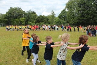 An diesem Tag konnten die Kinder ihr Vereinstrikot überstreifen und sich in den Farben ihres Heimatvereins präsentieren. Das haben die Schülerinnen und Schüler der Rodensteinschule getan. Fast alle Kinder erschienen in einem Trikot. Sie sind Mitglieder in einem Sportverein und konnten durch das Tragen des Trikots ihre Sympathien gegenüber dem Sport zum Ausdruck bringen. Die Kinder ordneten sich dem Tanzverein, dem Handball- oder Fußballverein, dem Turnverein, der DLRG, der Mini-Feuerwehr und weiteren Vereinen zu. Stolz zeigten die Schülerinnen und Schüler, in welchem Verein sie aktiv sind. Die Gruppendynamik war enorm und alle Vereine wurden gewürdigt.