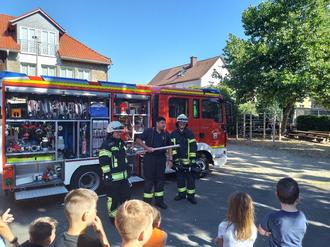 Am Montag, den 4.7.2022 hatte die Grundschule Wersau einen Brandschutz-Projekttag. Die Feuerwehr war dazu den ganzen Tag bei uns zu Besuch. Als Erstes wurde das MLF und der MTW gezeigt und die Feuerwehrmänner erklärten uns die Ausrüstung. Zudem sahen wir, was man alles bei einem Atemschutzeinsatz tragen muss. Diese Ausrüstung wiegt ungefähr 32 kg. Nach der Pause übten wir den Notruf abzusetzen und konnten in einem Puppenhaus sehen, wie sich bei einem Brand der Rauch im ganzen Haus verteilt. Anschließend durften wir Hütchen mit Wasser umspritzen. Zuletzt wurde noch ein Klassenzimmer mit Kunstrauch vernebelt. Es hat uns sehr gut gefallen.