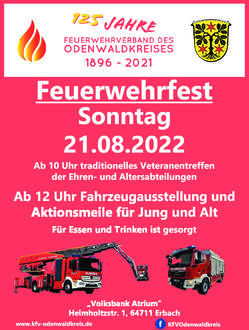 nach zwei Jahren Pause aufgrund von Corona findet in diesem Jahr am Feuerwehrfest des Kreisfeuerwehrverbandes am 21.08.2022 ab 10:00 Uhr wieder ein Veteranentreffen statt.