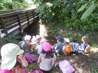 Bepackt mit ausreichend Trinken spazierten wir ab dem Kindergarten von einem Flussstück zum anderen Flussstück und beobachteten dort die Natur.
