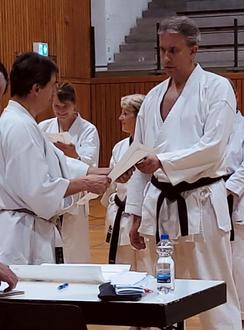 Im Anschluss an den Lehrgang fanden die DAN-Prüfungen statt, denen sich auch drei Karatekas unseres Vereins stellten.