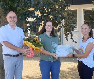 Aileen Williams aus Höllerbach hat ihre dreijährige Ausbildung zur Verwaltungsfachangestellten bei der Gemeinde Brensbach überaus erfolgreich abgeschlossen. Sie wird nun als neue Kollegin unser Team der Verwaltung verstärken. Ihre künftigen Verantwortungen liegen im Bereich des Personalamts und in der Finanzverwaltung. Darüber hinaus wird Frau Williams die kommunale Gremienarbeit als Protokollantin mit unterstützen. Schon während ihrer Ausbildung unter der Anleitung von Birgit Hettich hat sich Frau Williams bewährt und war schnell integriert. Die gesamte Belegschaft freut sich daher sehr darüber, dass sie bei uns im Team bleibt. Das Willkommensgeschenk hat dann auch stellvertretend für die Kolleginnen und Kollegen Sina Pfeil überreicht. Ich freue mich sehr darüber, dass wir für die Verwaltung mit unserem Ausbildungskonzept erneut eine kompetente Kollegin gewinnen konnten. Für die nächsten drei Jahre werden wir deshalb wieder eine Ausbildungsstelle anbieten und auch besetzen, um einen weiteren Beitrag zur Förderung von Fachkräften in der Verwaltung zu leisten. Frau Williams wünsche ich für ihren weiteren beruflichen Weg viel Erfolg und uns eine gute Zusammenarbeit.