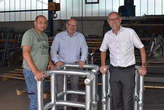 Bei dem Besuch wurden auch ernstere Töne angeschlagen, denn die aktuellen weltpolitischen Themen sparen auch den Odenwaldkreis nicht aus. Auf die Frage von Landrat Matiaske, ob Kratz von den gestiegenen Energiepreisen und vom allerorts vorhandenen Mangel an Personal betroffen sei, antwortet er: „Natürlich wird perspektivisch auch der Fachkräftemangel eine große Rolle spielen, allerdings ist die Situation im Moment noch etwas entspannt. Ich bin noch gut aufgestellt, denke teamorientiert und versuche, meine Mitarbeiter langfristig zu halten. Allerdings treiben uns die steigenden Energiekosten um.“ Durch den exorbitanten Anstieg der Stromkosten werde seit kurzem auch Photovoltaik im Betrieb genutzt und immer wieder an jeder Ecke optimiert. „Der Gesetzgeber lässt den Mittelstand hier allerdings mit seinen Problemen allein. Insbesondere die Personengesellschaften tragen hier große Risiken, da wir heute nicht wissen, was morgen kommt. Eine Planbarkeit auf längere Zeit würde uns hier einfach weiterhelfen. Immerhin hatten und haben wir keine Probleme an Stahl zu kommen, er ist nur zeitweise sehr teuer geworden. Glücklicherweise benötigen wir keine Elektronikbauteile, sonst sähe die Situation oft ganz anders aus.“