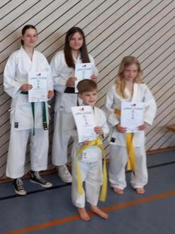 Ende Juni fanden in Mühlheim/Main die halbjährlichen Kyu-Prüfungen statt. Unter den strengen Augen von unserem Sensei Giovanni Stolfa (6. Dan) absolvierten Meda Viciu (2. Kyu), Lene May (6.Kyu), Ben Peukert (8. Ky), Mattis Katzer (8. Kyu), und Aurelia Denger (8. Kyu) erfolgreich ihre Prüfung. Dies ist ein weiterer Schritt Richtung „Schwarzer Gürtel“ (Dan). Herzlichen Glückwunsch!