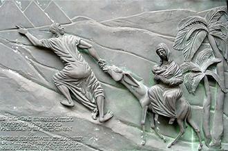 Am 15. September feiert die katholische Kirche weltweit den Gedenktag der sieben Schmerzen der Maria. Zu den sieben Schmerzen der Maria gehört die Flucht mit dem Jesuskind vor König Herodes nach Ägypten. Das Bild von Friedbert Simon zeigt im pfarrbriefservice.de ein Bronzerelief an einem Kirchenportal. Heute flüchten Menschen vor Wassermassen, vor Feuer, vor Erdbeben, vor Dürre, vor Krieg.